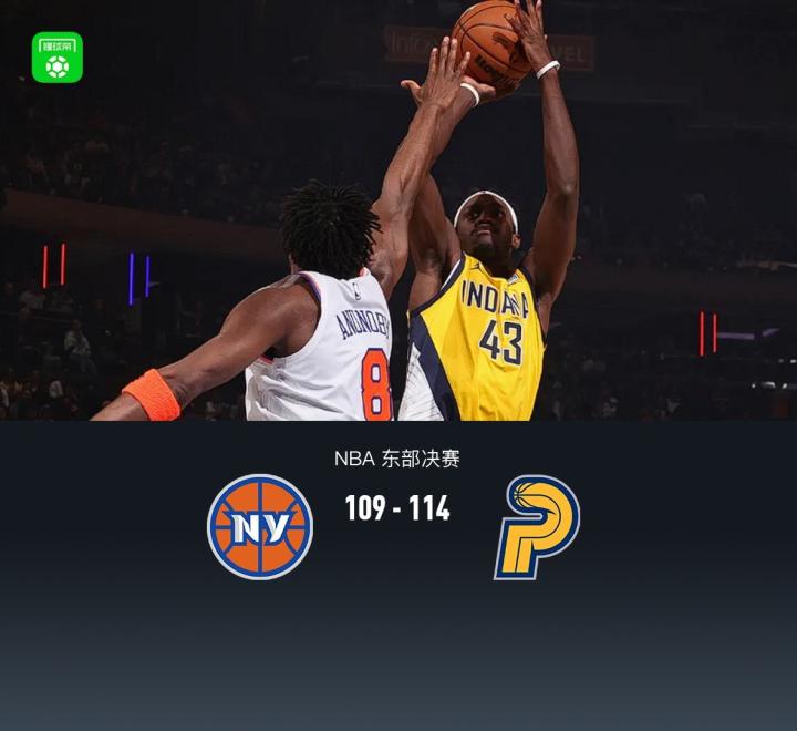 北京时间5月24日,NBA季后赛东部决赛G2尼克斯主场迎战步行者。开场步行者西亚卡姆状态火热连续得分带队取得19-9领先,尼克斯迅速调整追上比分,次节双方相继打出小高潮但依旧保持拉锯紧咬比分,半场尼克斯52-49步行者,第三节继续紧咬比分双方81平进入末节决战,末节上来步行者持续三分雨,还剩不到3分钟领先10分,尼克斯布伦森站出来一度追至1分分差,但最后关键时刻错失绝平三分,最终步行者114-109尼克斯,系列赛大比分2-0领先。