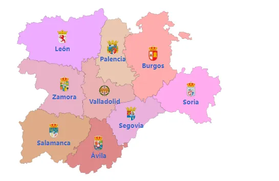 按照西班牙的行政区划,面积较大的自治区下辖省。卡斯蒂利亚-莱昂也不例外,该自治区下辖9个省。
