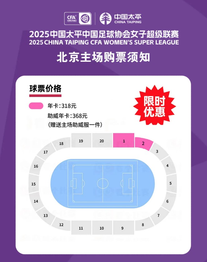北京女足开始售卖年卡,过半数女超球队在本赛季公开售票