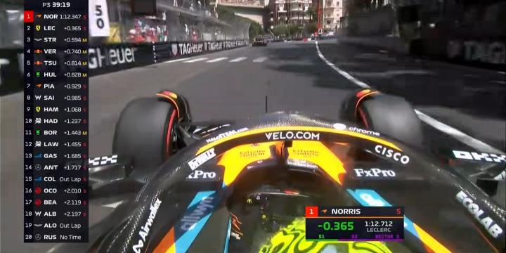 三练进行至20分钟,所有车手陆续都驶上赛道进行排位赛模拟,诺里斯两段刷紫后来到榜首,斯特罗尔、两台红牛及霍肯博格的C5飞驰圈成绩看起来也很有竞争力;