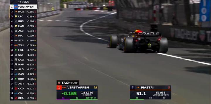 维斯塔潘中性胎再飞一圈,一段刷紫超越诺里斯0.165秒,来到榜首;