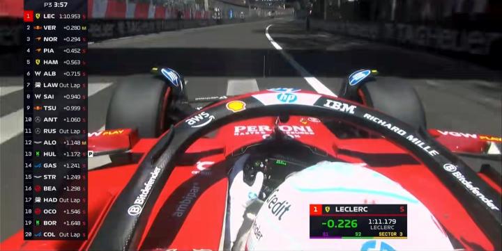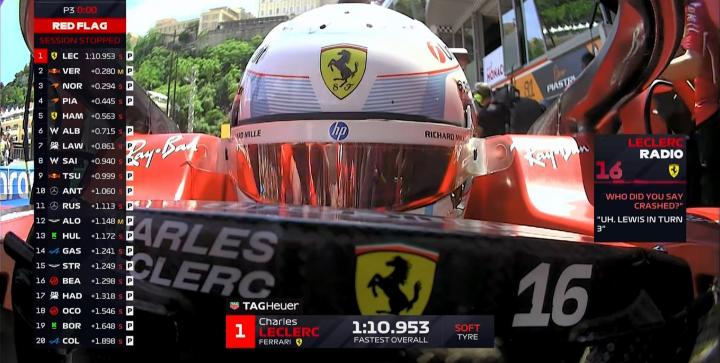 F1摩纳哥三练:勒克莱尔全场最快,汉密尔顿蹭墙,拉塞尔第11