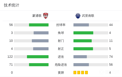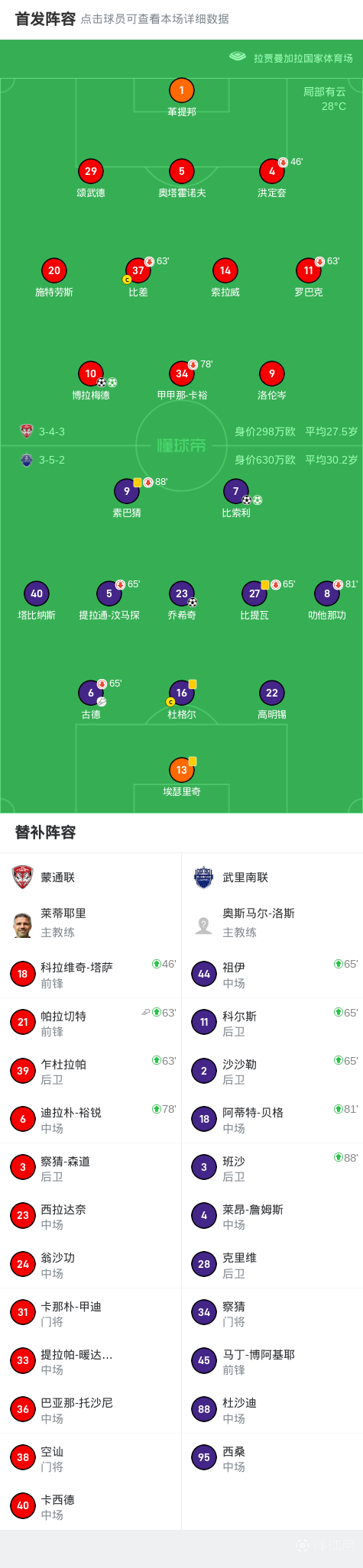 第45+4分钟,乔希奇手球送点,博拉梅德主罚命中,蒙通联1-2武里南联