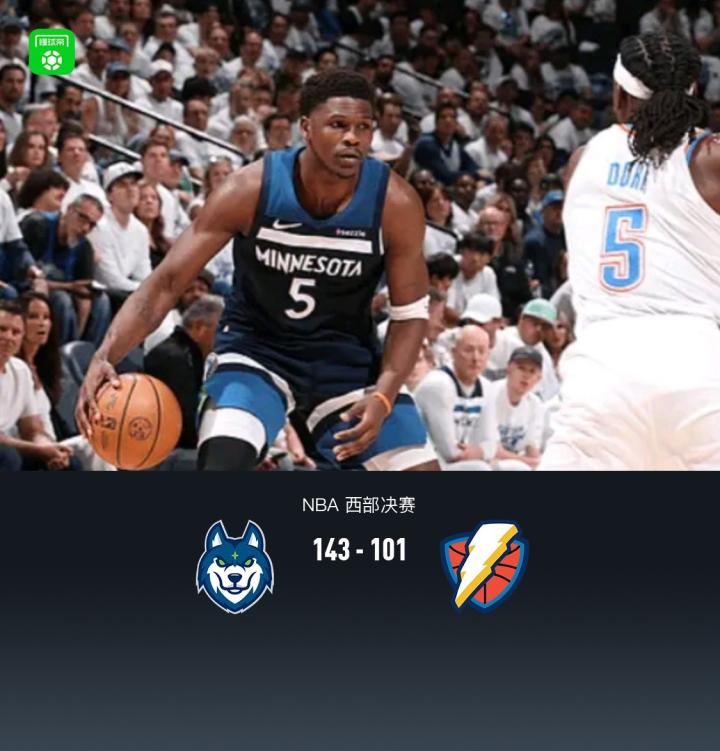森林狼143-101大胜雷霆追至1-2,爱德华兹30+9,亚历山大13中4得14分