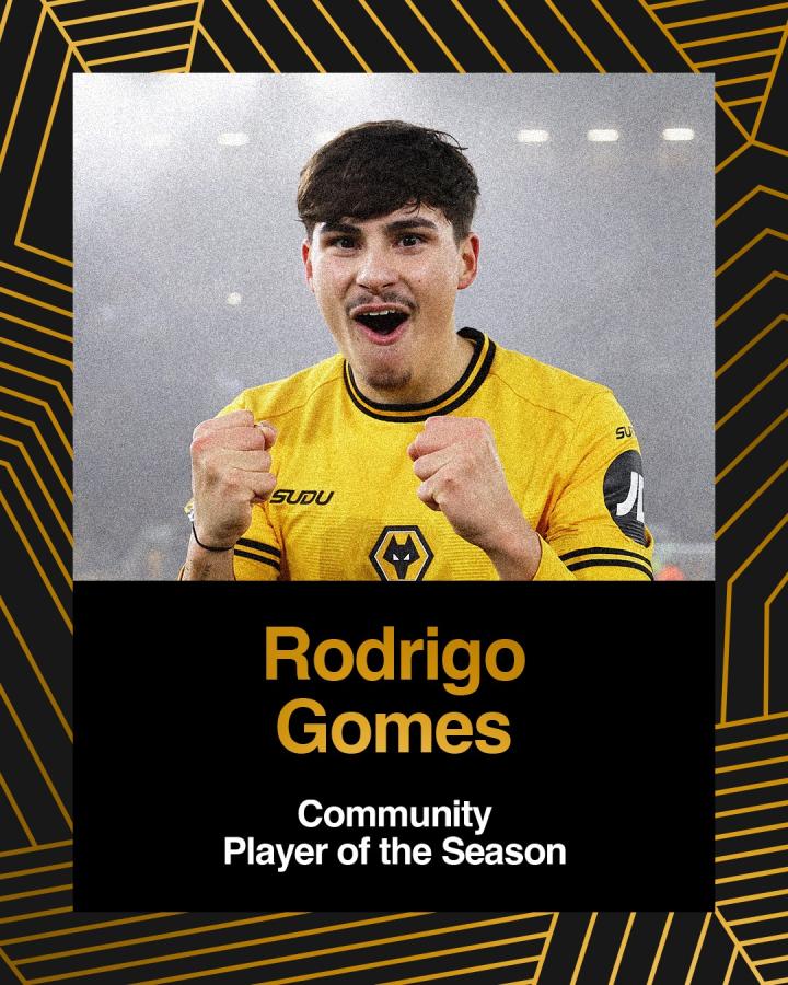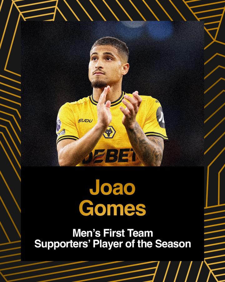 北京时间5月25日,狼队官方公布了本赛季赛季最佳奖项的获得者,其中,若昂-戈麦斯当选球迷票选男足赛季最佳球员,罗德里戈-戈麦斯当选狼队基金会社区男足赛季最佳球员。