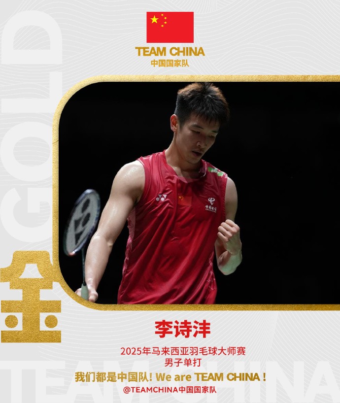 李诗沣2-0战胜斯里坎特,夺马来西亚羽毛球大师赛男单冠军gaoniu @懂球帝2025-05-25 16:325月25日,马来西亚羽毛球大师赛男单决赛,李诗沣2-0(21-11、21-9)战胜斯里坎特,取得双方交手4连胜并获得男单冠军,也是职业生涯第5个羽联巡回赛男单冠军。李诗沣耗时36分钟夺得赛季首冠,他也成为2009年马来西亚大师赛创办以来,首位在该项赛事夺冠的国羽男单选手。展开更多