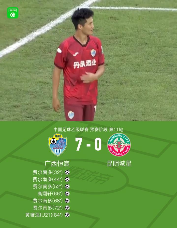 广西恒宸7-0昆明城星,费尔南多五子登科,高翊轩传射