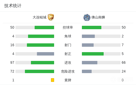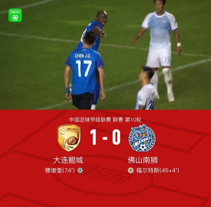 大连鲲城1-0佛山南狮,穆谢奎制胜,福尔特斯造点又失点