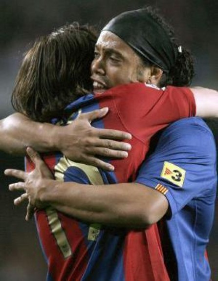 初到巴萨之时,小罗和埃托奥、久利组成了令人闻风丧胆的三叉戟。随后,梅西横空出世,并取代久利占据了主力右边锋的位置。从梅西进入一队的第一天起,小罗就格外关照这个超级天才。在小罗宣布退役后,梅西也通过社交平台,向老大哥表达了自己的感谢,“像我一直所说的那样,在你身边,我学到了很多东西。当我初到(巴萨)更衣室时,你使一切都变得容易,我会因此而永远感谢你。我有幸与你共同经历了很多事情,我非常快乐。当皮球在你脚下时,你就是一个‘现象级’的球员,除此之外,你还是一个伟大的人,这是最重要的。”