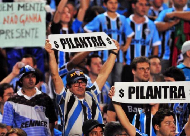 在小罗加盟弗拉门戈后,格雷米奥的球迷表现地出奇愤怒,在他们看来,罗纳尔迪尼奥就是“见财忘义”的小人(弗拉门戈提供的薪水远比格雷米奥高)。为了表达自己的愤怒,格雷米奥球迷把小罗的头像印到100雷亚尔的纸币上,只要后者回到奥林匹亚体育场踢球,“三色军团”的球迷就爆发出“Pilantra”的斥责声。