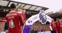 捧杯时刻!队长范戴克举起英超冠军奖杯,恭喜冠军利物浦