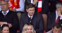 第20分钟,利物浦比分落后,镜头给到看台上的杰拉德