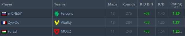现年24岁的“法国最终兵器”Mathieu “ZywOo” Herbaut在总决赛中轰出59杀1.52Rating的可怕数据,整站赛事出战13张地图平均Rating达到1.27,力压总决赛对手torzsi拿下HLTV&ESL双料MVP。