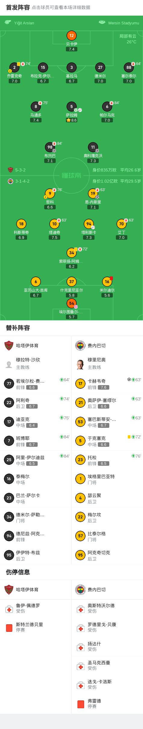 哈塔伊体育4-2逆转费内巴切,米尔迪尔染红,切廷乌龙+失误