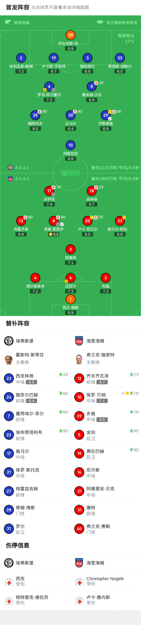 第31分钟,齐默希德助攻,菲尔豪尔破门扳平比分,埃弗斯堡1-1
