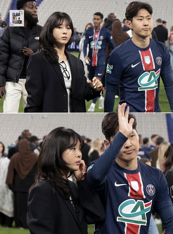 在此前巴黎夺得法甲冠军后,李刚仁就曾把法甲冠军奖牌挂在了女友的脖子上。