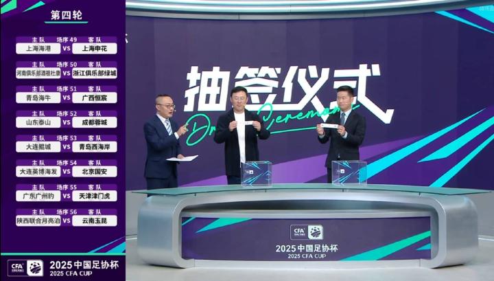 北京时间5月27日,中国足协杯举行了第二次抽签仪式,以确定四至七轮的对阵信息及主客场。经过抽签,足协杯第4-7轮对阵情况及主客场情况如下: