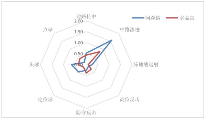 3、(模型赔率盘口推荐):以上两张实力值和技战术攻防模型可以看出,阿森纳的实力值对比水晶宫并没有拿到一球的优势,而现如今双方的状况来看更是没有体现出应有的实力差距;阿森纳在技战术进攻端的中路渗透能力自然是温格的看家本领,而水晶宫同样比较依赖中路渗透,另外在反击战中或许能够寻觅到不少的得分机会。初盘开出阿森纳主场让球半的盘口,后势已经降为一球的盘口,显然对于阿森纳取胜的信心在减弱,推荐盘口看好水晶宫。