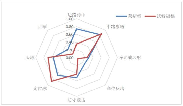 3、(模型赔率盘口推荐):以上两张实力值和技战术攻防模型可以看出,莱斯特城的实力值勉强高出沃特福德半球的优势,双方在进攻端都是具备一定的特点和杀伤力;莱斯特城在技战术进攻端的边路传中和反击战非常体现出一定的得分优势,而沃特福德则主要依靠中路渗透和定位球战术获得破门得分的机会。初盘开出莱斯特城主场让半球的盘口,整体攻防的稳定性上莱斯特城自然是更胜一筹,推荐看好莱斯特城取胜。