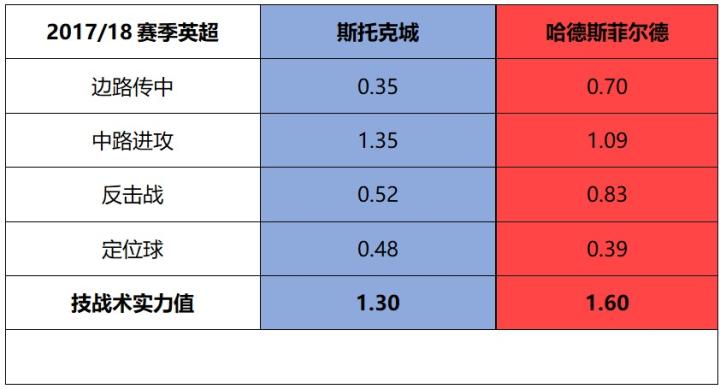 2、(实力和技战术解析):斯托克城最近13轮联赛期间只赢过目前联赛排名最后2位的球队斯旺西和西布朗,球队目前联赛遭遇3连败也是跌至谷底,新帅兰伯特上任后将会对球队整体攻防进行一次重新洗牌,特别是此前糟糕的防守体系,进攻端由于缺乏足够的进攻手段和板凳深度,仍旧只能寄望于沙奇里和舒波莫廷的个人能力在反击中有所发挥,兰伯特此前的执教风格偏重英式传统的边路传中战术,天空之城的高空优势将会被重新激活并找回硬朗的球风。哈德斯菲尔德最近5轮联赛同样没有赢球,球队受限于阵容实力的局限更多的是以英冠级别球员为主的班底,即便是冬窗签下的普理查德也是在英冠赛场上有过出色发挥的豪门租将,主教练瓦格纳的战术理念追随克洛普而比较超前,战术执行能力会有一定的挑战性,但是整体作战意识还是体现的非常出色,因此有利于整体防守的组织和战术执行力,并没有绝对的前场进攻得分优势但是也不会轻易缴枪投降。