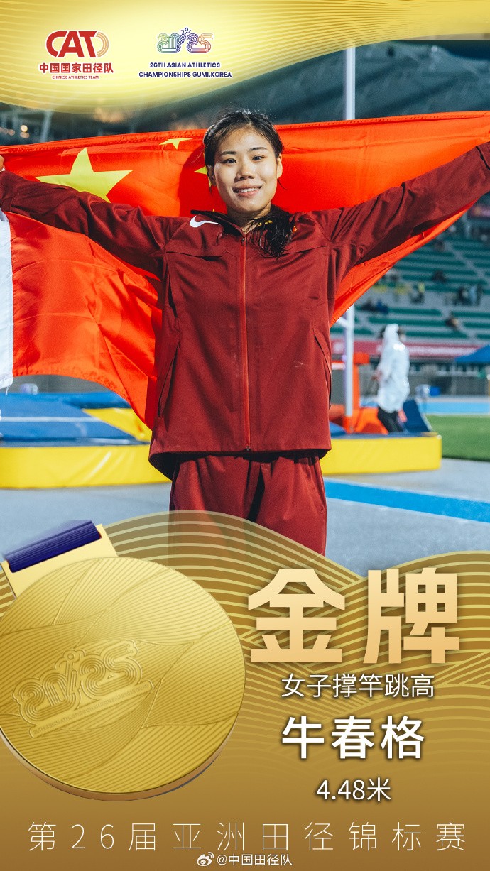 女子撑杆跳:中国选手包揽冠亚军,牛春格首夺亚锦赛冠军gaoniu @懂球帝2025-05-28 20:535月28日,韩国龟尾进行的2025年田径亚锦赛女子撑杆跳决赛,中国选手牛春格以4米48获得冠军,徐慧琴以4米23获得亚军,中国选手包揽冠亚军。牛春格今年在国内已经达成五连胜,最好成绩是在南京街头赛跳出的4米65。此次亚锦赛夺冠,也是牛春格首次在洲际大赛上夺冠。日本选手诸田实咲4米13获第三名。展开更多