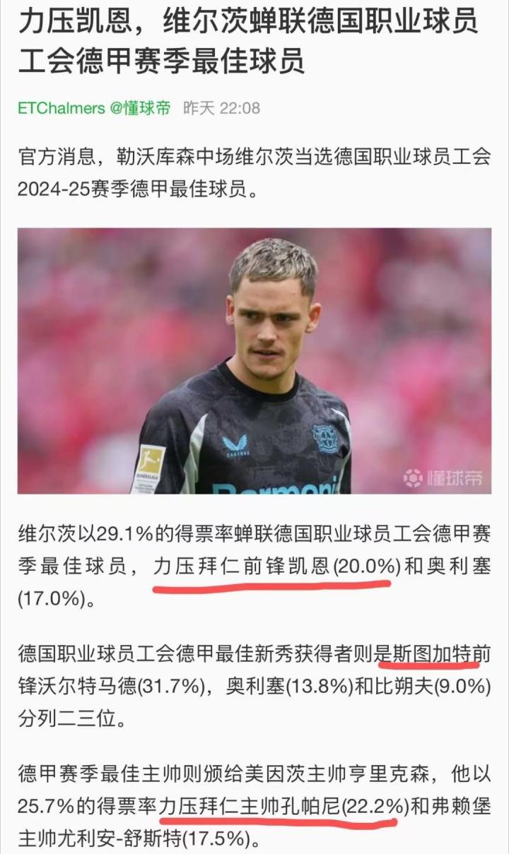 维尔茨得奖暴露了一个尴尬的事实:连德国籍球员都认...李老八啊 @懂球帝2025-05-29 07:07维尔茨得奖暴露了一个尴尬的事实:连德国籍球员都认为拜仁拿联赛冠军不算高规格荣誉。 这就是为什么我说凯恩在拜仁夺冠,反而使自己历史地位下降的原因。拜仁球迷先别不服,扪心自问海因克斯和瓜迪奥拉你们更认可哪个?展开更多