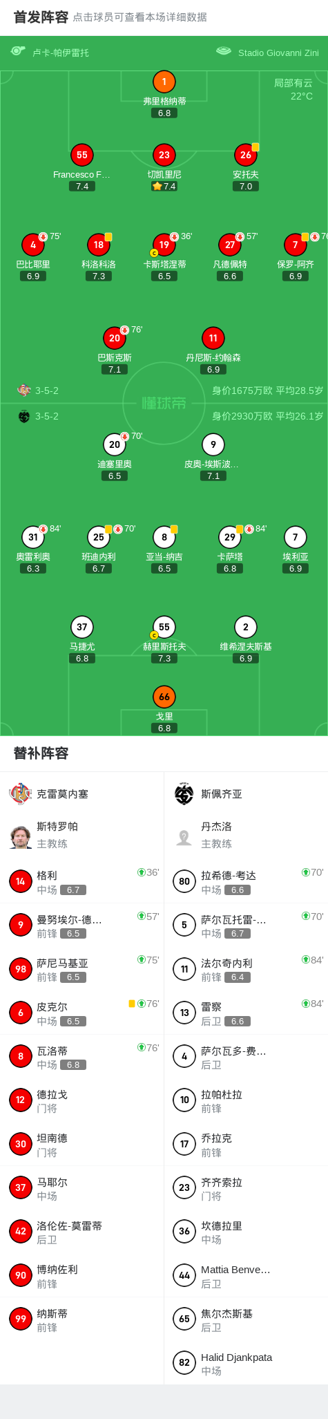 克雷莫内塞0-0斯佩齐亚,奥雷利奥进球被吹,两队总计2射正战报bot @懂球帝2025-05-30 04:30意大利足球乙级联赛升级附加赛决赛首回合,克雷莫内塞主场迎战斯佩齐亚。全场比赛双方均未能取得进球,最终以0-0的比分握手言和。点击查看本场比赛详细数据>>点击查看意乙完整积分榜>> 球队阵容 技术统计 展开更多