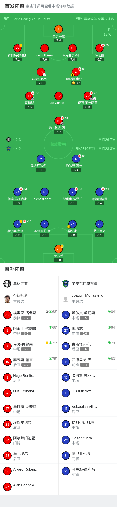 第52分钟,奥林匹亚球员Javier Dominguez助攻雷德斯打入一球。