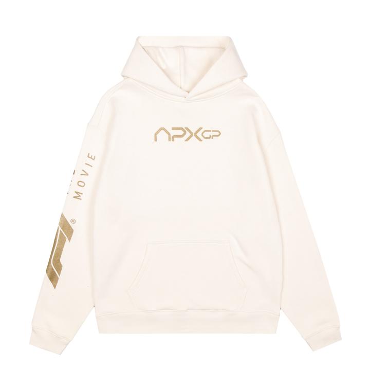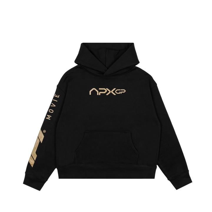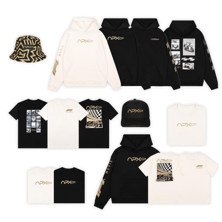 这部电影的限量周边系列现已在F1官方商店全球发售。该系列主打黑金色调,取自电影中的虚构车队APXGP,涵盖连帽卫衣、T恤、帽款等潮流单品。从大胆的图形印花、几何波纹图案到简约的APXGP标志,这一系列巧妙平衡了运动、街头与极简设计。