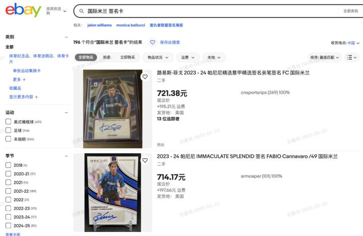 在查询这两件球衣的同时,eBay还推荐了很多藏品,尤其是球星卡。在eBay上买球星卡非常方便,卡片成色如何,一口价还是拍卖,运费多少,发货地在哪儿……一目了然。