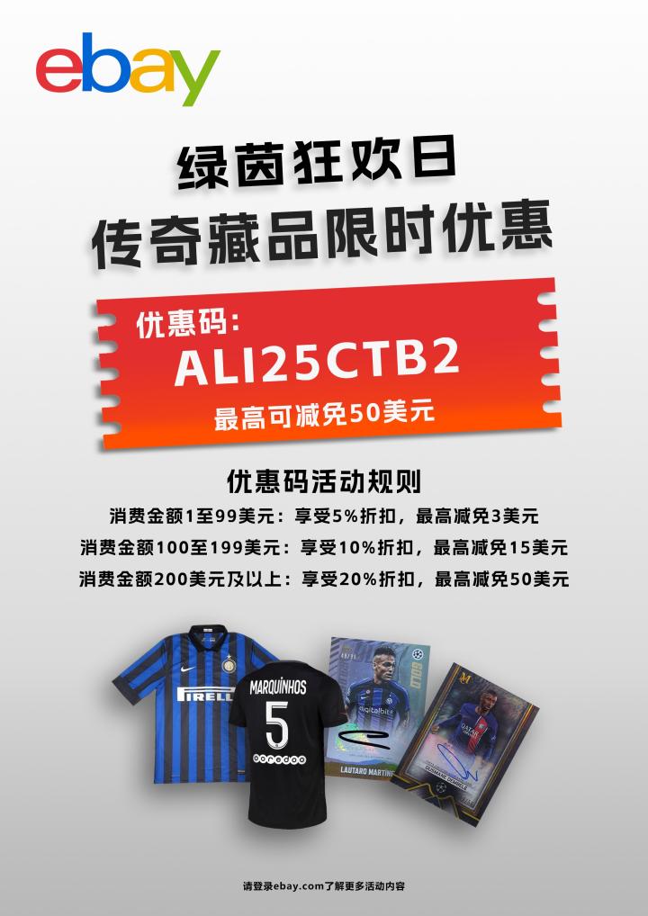 悄悄告诉大家,现在在eBay下单的时候只需输入优惠码ALI25CTB2就可以享受最高减免50美元(约合人民币360元)的专属折扣优惠!买得越多,省得越多!每周三上支付宝搜“极赏星球”更有eBay限量独家好券相送。不说了,我赶紧去下单姆巴佩和萨内蒂的球衣了,看看冠军会花落谁家!