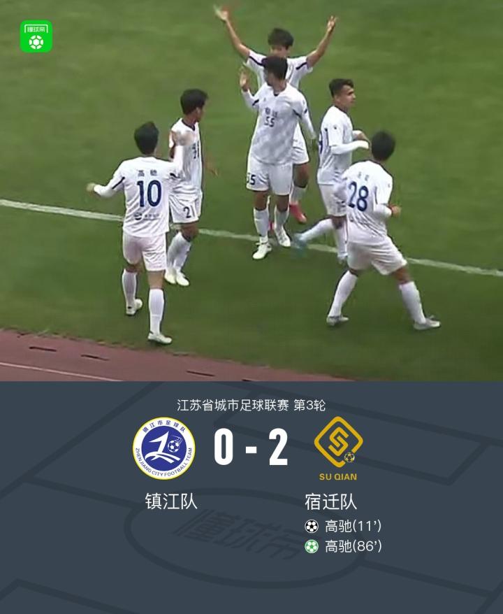 江苏城市联赛:宿迁队2-0客胜镇江队,高驰梅开二度