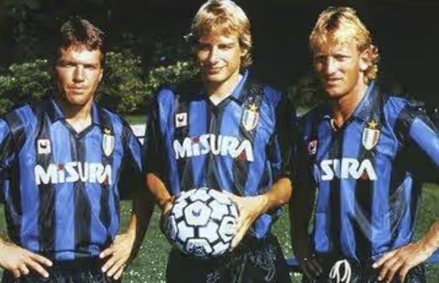 佩莱格里尼的另一大功绩是在其任内为国米组成了历史留名的德国“三驾马车”。1988年,国米从拜仁购入了27岁的马特乌斯以及布雷默,两人到队的第一年就帮助国米以前文提到的“两分制时代最高积分”联赛夺冠。随后1989年,克林斯曼又从斯图加特加盟,自此“三驾马车”正式合体。