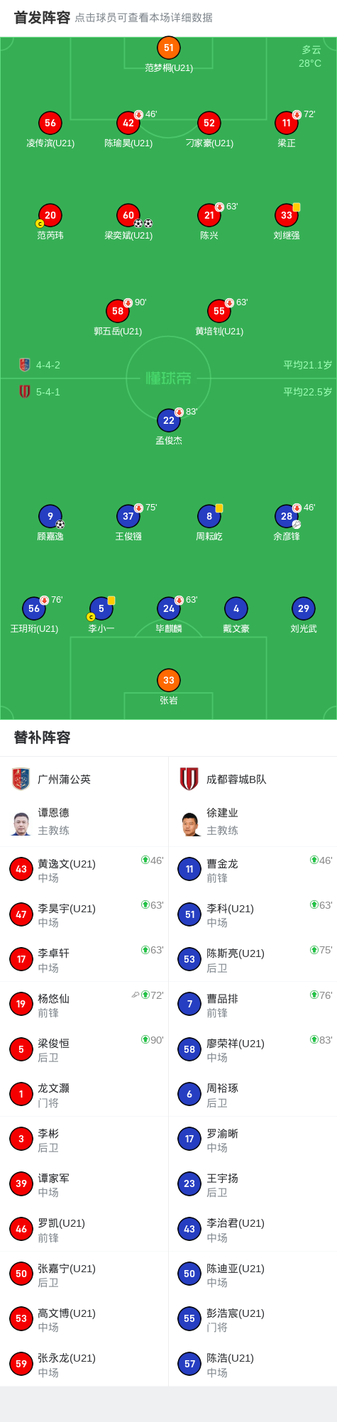 广州蒲公英2-1成都蓉城B队,梁奕斌梅开二度,张岩赛季首秀