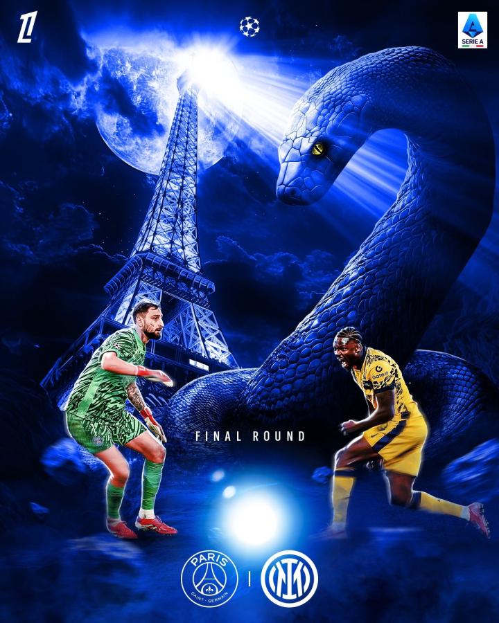 6月1日凌晨3:00,本赛季的欧冠决赛将在德国慕尼黑进行,来自法甲的巴黎圣日尔曼队对阵来自意甲的国际米兰队。赛前,法甲官方在官媒发布了赛前海报,配文“🔴🔵 vs 🐍”。为即将到来的这场决战进行预热。