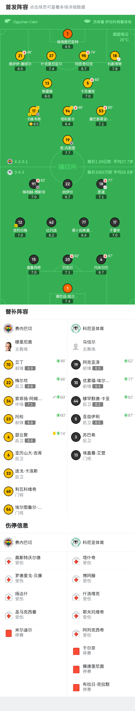 第75分钟,费内巴切球员索菲扬-阿姆拉巴特助攻卡赫韦奇打入一球。