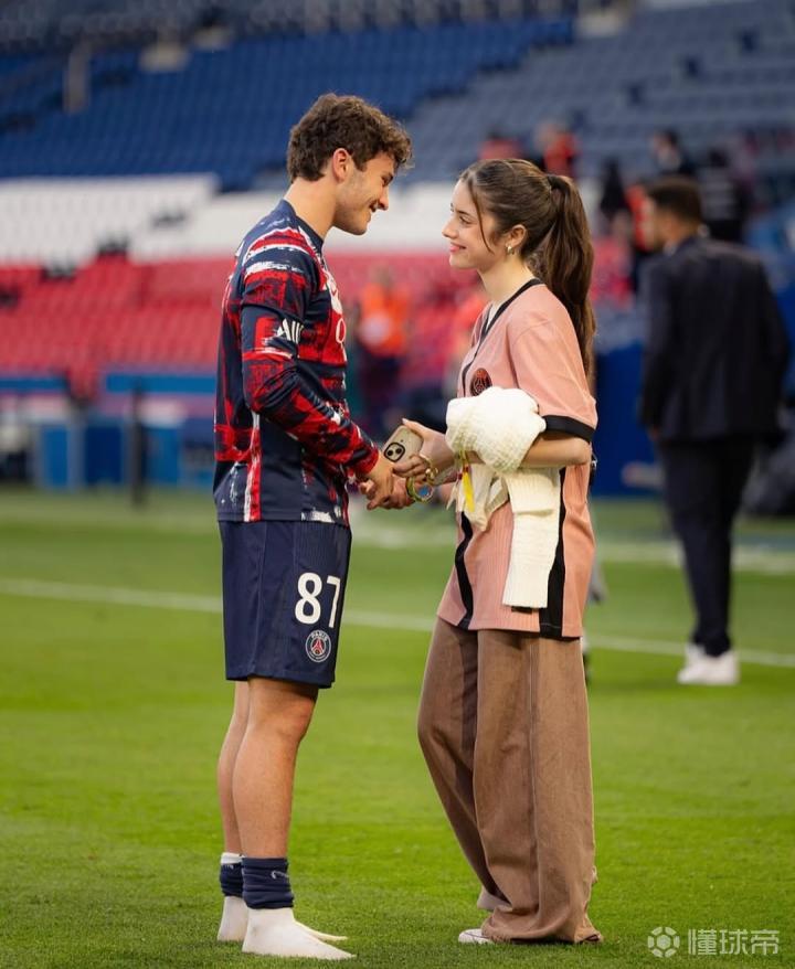 会如愿吗?若昂-内维斯女友马达莱娜赛前为大巴黎加油助威