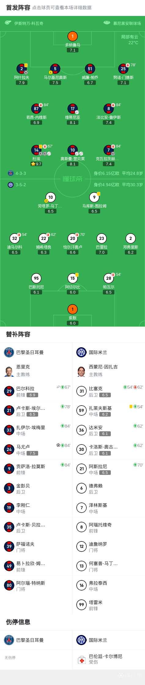 第52分钟,国米做出调整,迪马尔科、帕瓦尔被扎莱夫斯基、比塞克换下
