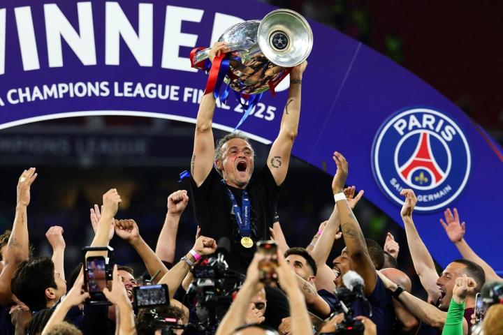 2024-25赛季欧冠决赛,巴黎圣日耳曼5-0大胜国际米兰,队史首次夺得欧冠冠军。