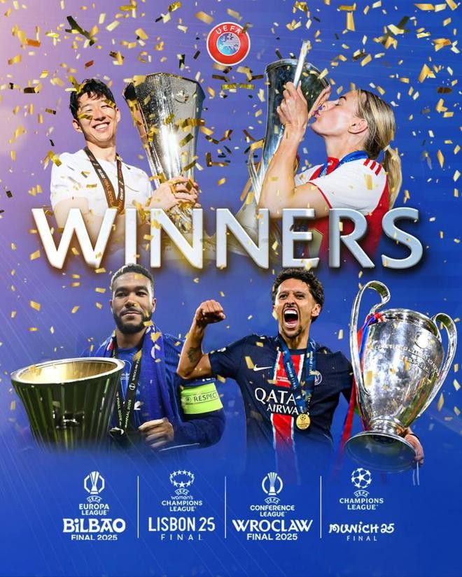 2024-25赛季四大赛事冠军产生,欧足联官方送上祝贺