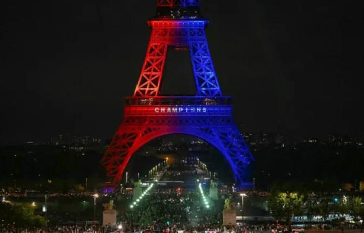 巴黎圣日耳曼夺冠后,埃菲尔铁塔也点亮了红蓝灯光