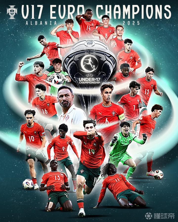 欧青U17葡萄牙3-0法国夺冠,阿尼西奥、库尼亚、内维斯破门