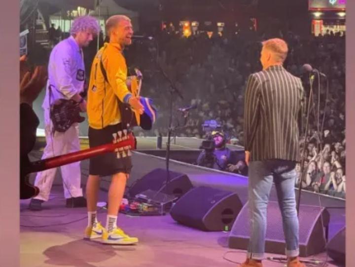 据《太阳报》的消息,利兹联球员班福德近日参加The Kaiser Chiefs乐队的演唱会,并与歌手们同台献唱,吸引了众多粉丝的目光。