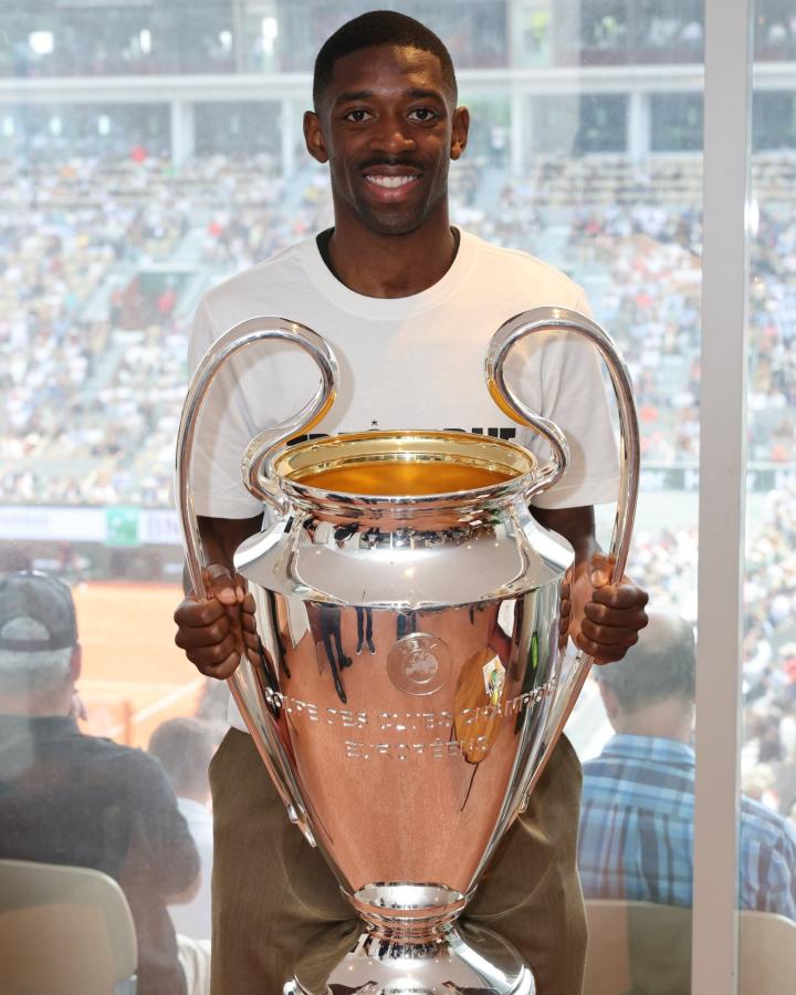 北京时间6月2日,法网官方发布登贝莱手捧欧冠冠军奖杯,观看法网比赛的照片。
