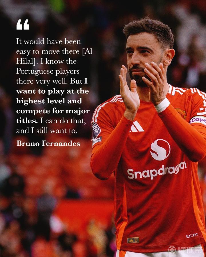 随后,曼联官方在社交媒体上回应了B费的留队言论,并写道:“我们的队长🫡。”