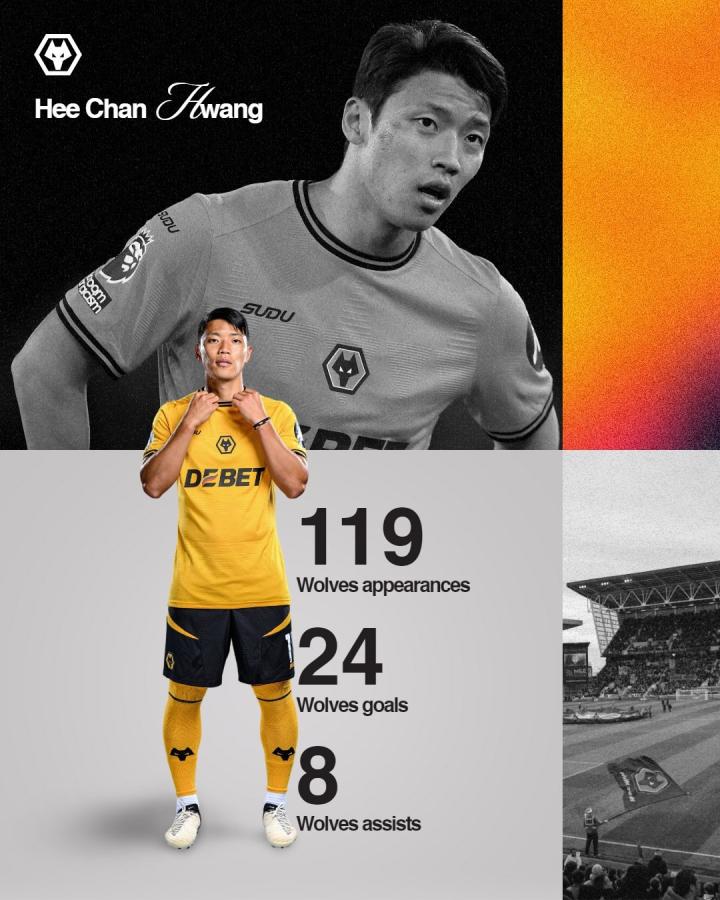 本赛季,29岁的韩国国脚黄喜灿代表狼队在各项赛事中出场25次,其中只有8次为首发出场,打进2球送出1次助攻,黄喜灿因伤缺席多场比赛。