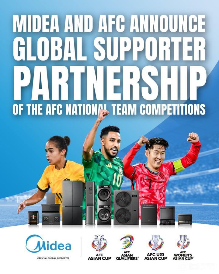 亚足联官方写道:“亚足联宣布与美的集团达成国家队赛事全球合作伙伴关系!”