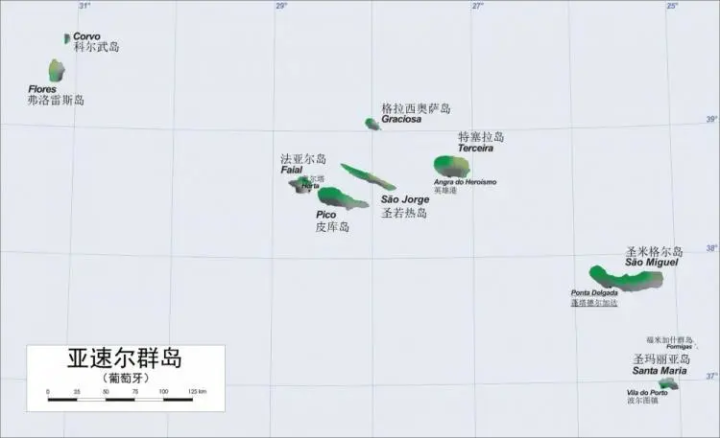 亚速尔群岛与马德拉群岛的地理成因一样,也是火山岛。该群岛由9个主要岛屿组成。按照大致位置分为东南部群岛、西北部群岛和中部群岛。