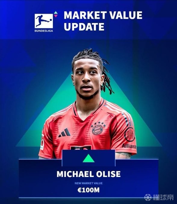 本周四,德国转会市场公布了德甲球员的最新身价,其中奥利塞的身价上涨至1亿欧元,凯恩的身价跌至7500万欧。