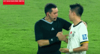 对点球判罚有异议,杨泽翔中场找裁判进行交流